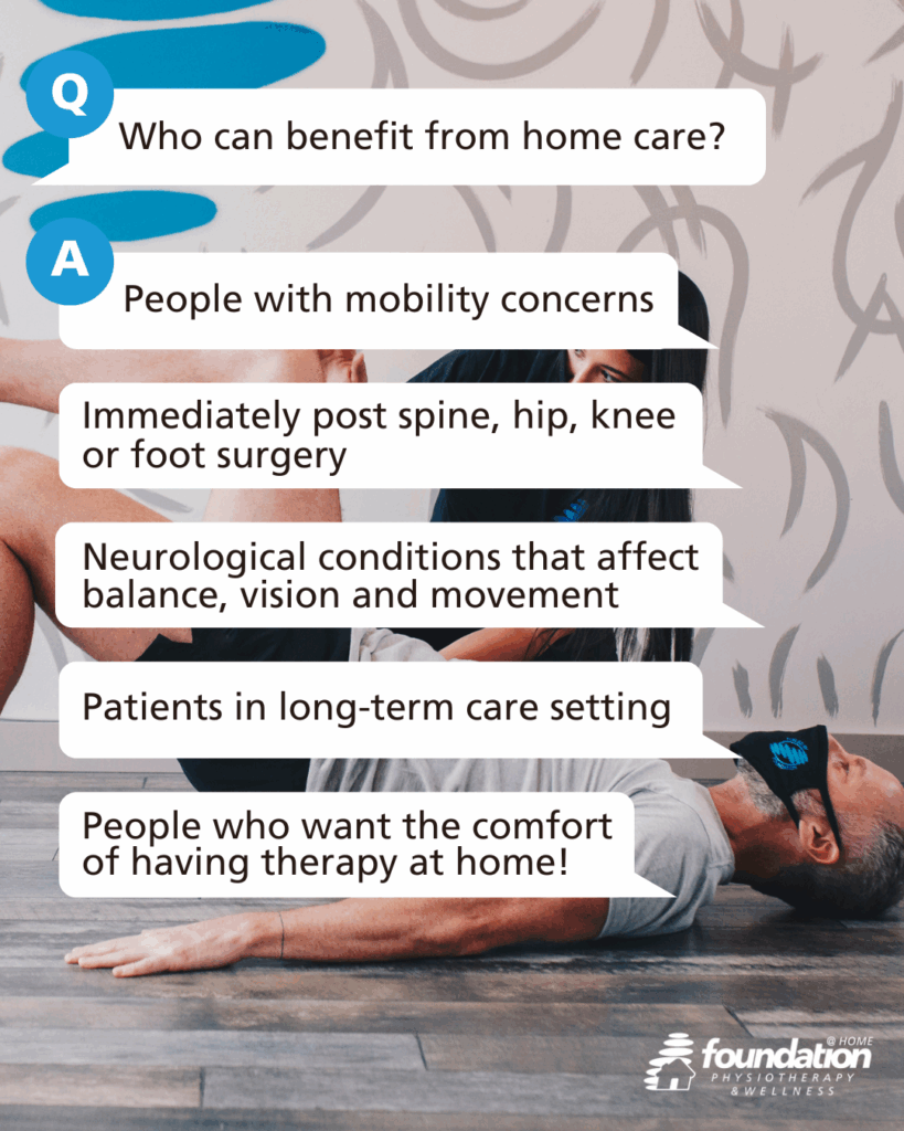 If you or a loved one is facing physical limitations due to surgery, stroke, or other health challenges, Foundation Physiotherapy & Wellness in Toronto now offers Foundation @HOME—bringing expert physiotherapy directly to your doorstep. Our licensed therapists provide personalized, clinic-quality care in the comfort of your home, making recovery more accessible, convenient, and tailored to your environment.